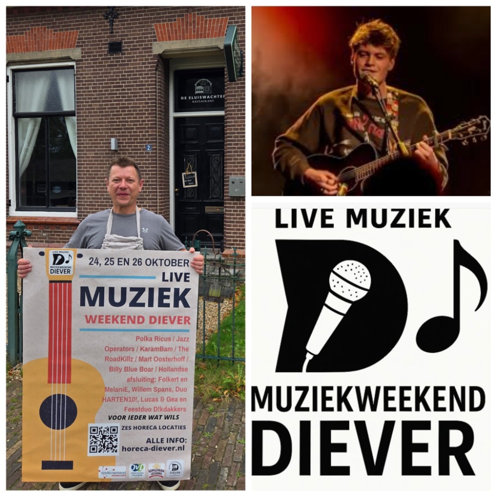 Tijdens Muziekweekend Diever kun je op zondag 26 oktober genieten van een intiem optreden van Mart Oosterhoff. Van 12.00 tot 14.00 uur speelt hij zijn eigen liedjes bij Restaurant De Sluiswachter aan de Dieversluis. De entree is vrije gift. Reserveren gewenst, vol=vol!